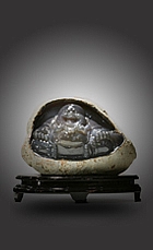 彌勒佛方臉凸頂,彎眉笑眼,鼻頭高挺,開臉較好,坦胸露腹。整體祥瑞充盈,增添了更多靈性及喜氣。彌勒大肚能容,容天下難容之事,笑口常開,笑天下可笑之人。警醒世人,凡事看開看遠(yuǎn),心情舒暢,笑對(duì)人生,才能心寬體胖,無憂人生,福氣自在眼前! 水膽瑪瑙,乃自然界形成的瑪瑙中包裹有天然形成的水,在瑪瑙制品中尤為稀罕。玉器雕琢工藝師們?cè)谔暨x瑪瑙料石中,首先要確定其有“水”,再用切割機(jī)把瑪瑙切開,切開時(shí)又要恰到好處:切面離水膽遠(yuǎn)了,看不見水;切得過近了,又容易把“膽”切破、破了“膽”的瑪瑙就失去了其雕琢的價(jià)值,一件成功的水膽瑪瑙雕件其雕琢之難和其工藝價(jià)值之珍貴。
